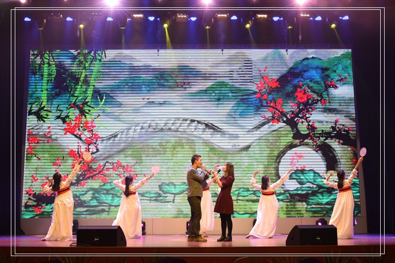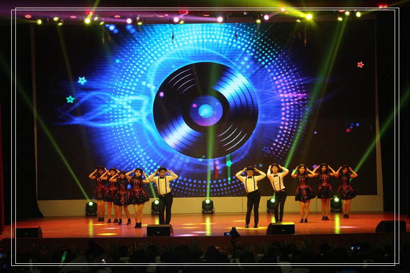 之后,起始年级初一工会以《舞动新春》劲爆起舞,开启表演大幕,由校行政、实验部、高中部、初中部、国际部、双语国际学校、实验学校等各分工会精心准备的节目依次华丽呈献。