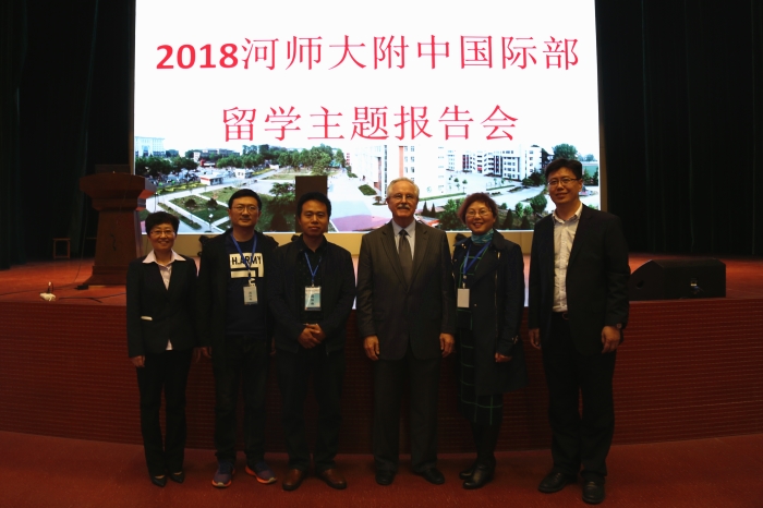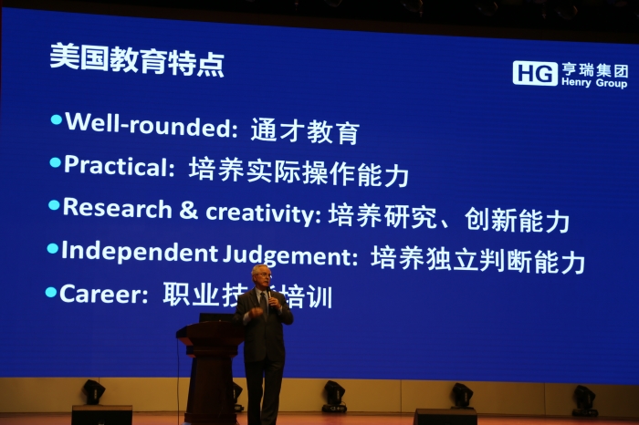 Hendryx先生从留学的价值、美国教育体系、美国大学申请三个方面详细的分享了自己对美国教育的深入理解。Hendryx先生认为中国经济的快速发展离不开中国的改革开放和国际交流,更离不开国际教育领域的快速发展,大批的留学人员提升了中国的国际理解,在促进中西方交往、提高中国的科技水平方面发挥了巨大的贡献。面对日益频繁的国际竞争和国际合作,只有接受国际教育才能最快程度地提升自身的竞争力,中国的家长和学生要有更长远的眼光和更宽阔的视野。Hendryx先生对我校国际部给予高度评价,他认为在新乡这个中部城市,河南师大附中作为一个公办学校在2010年就能认识到国际化教育的重要性,成立国际部,并且能培养出多位世界前十顶尖大学的毕业生是很了不起的事。