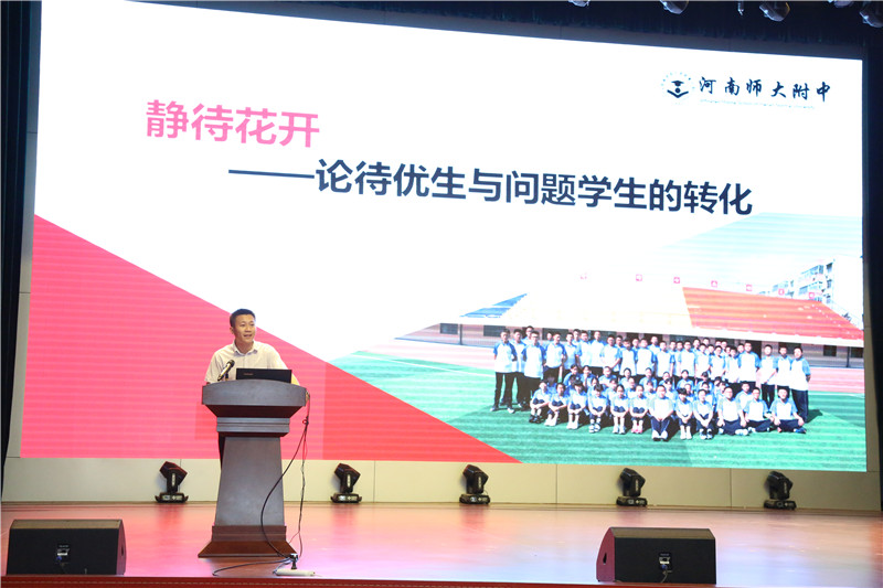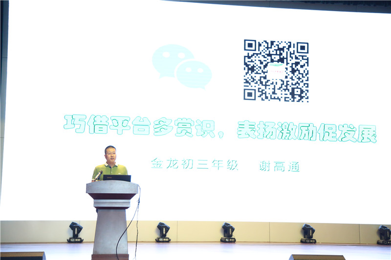 为贯彻落实《中共中央 国务院关于全面深化新时代教师队伍建设改革的意见》与《中小学德育工作指南》的相关精神,坚持立德树人的根本任务,展示我校级班主任在班级与学生管理中的艺术,加快我校青年级班主任的专业成长,促进我校德育工作的专业化、规范化、实效化,结合我校“导学自主”课堂教学改革的实际,按照本学期学校工作计划,5月15日下午,我校在西校区礼堂举办了2017-2018学年班级与学生管理经验交流会,学校中层以上领导及全体教师参加了此次活动,活动由金龙初中部承办,王福东老师主持。