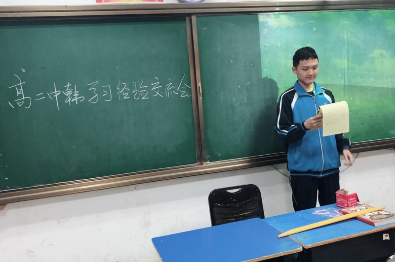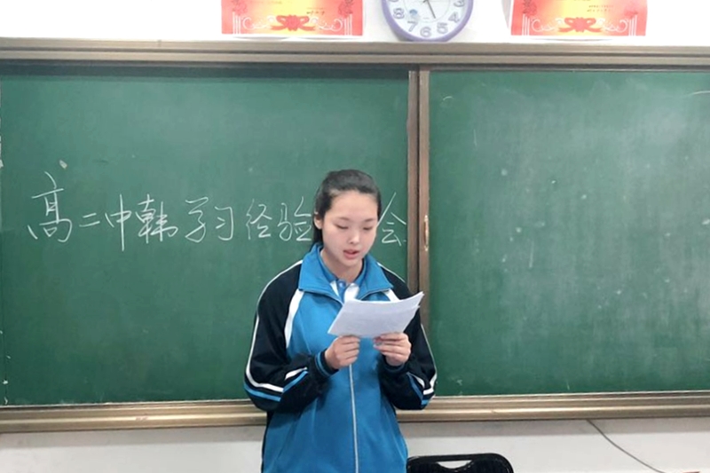 每天的韩语课的很多,学起来会枯燥无味,让人产生厌烦的情绪,当自己学不下去的时候,想想自己的未来,想想父母的对自己的期望,给自己一些压力,把这点压力转化成继续努力学习的动力,最后大家一定都可以考上自己心怡的大学。我的发言完了,谢谢大家!
