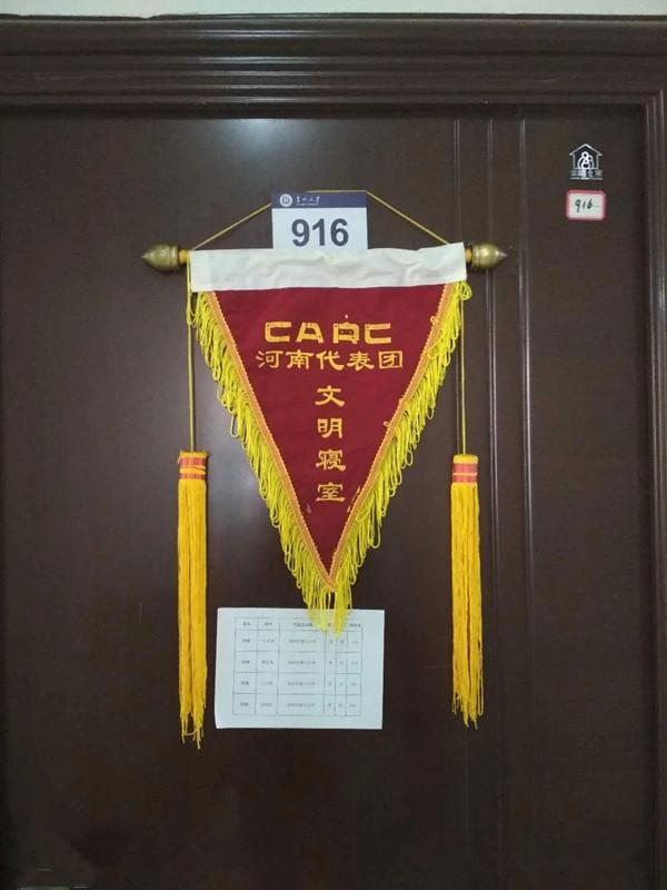 感谢河南省青少年科技中心统一组织、统一领导、统一行动,在比赛期间,团结友爱,秩序井然。河南代表团在积极备战的同时,内务一点不疏忽。我们团队内部成立督察小组,对临时宿舍进行不定期检查,并对表现突出的宿舍颁发流动红旗。