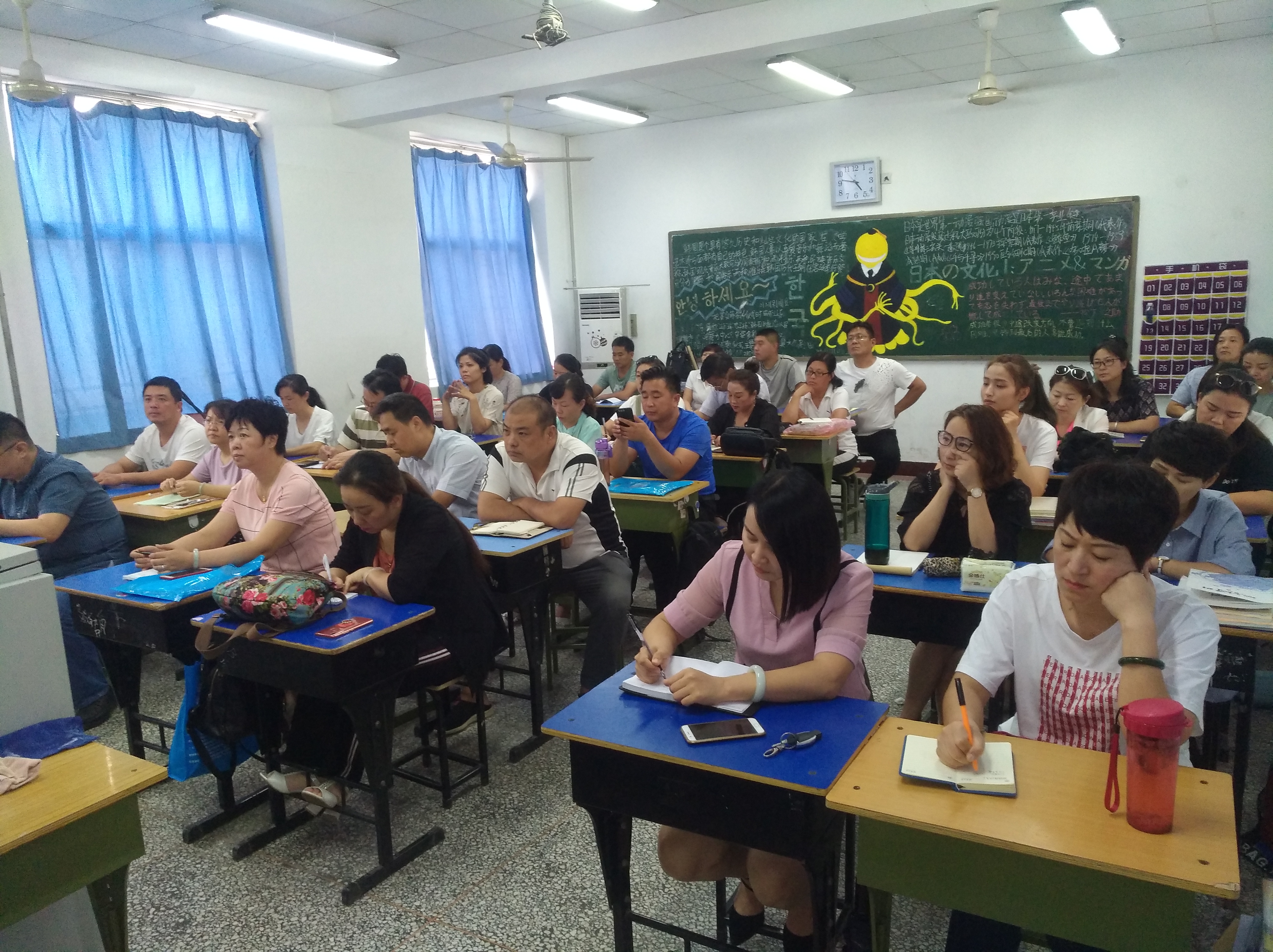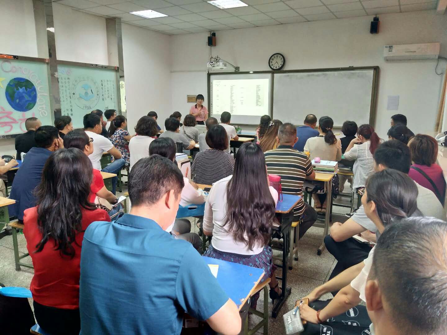 9月8日,新乡市教育高地要道——建设东路车水马龙,来自各地的车辆穿行于法桐绿荫中,路面上人声鼎沸,一片热闹景象。滚滚铁流中,既有到河南师范大学报到的新生的好奇面孔,也有来河南师大附中参加家长会的家长的期待脸庞。而同一时刻,安静的附中国际部教室里,各班班主任老师早已做好准备,刚刚上完开学第一周的最后一节课,来不及喝上一杯水,便拿出笔记本,等待家长的到来。