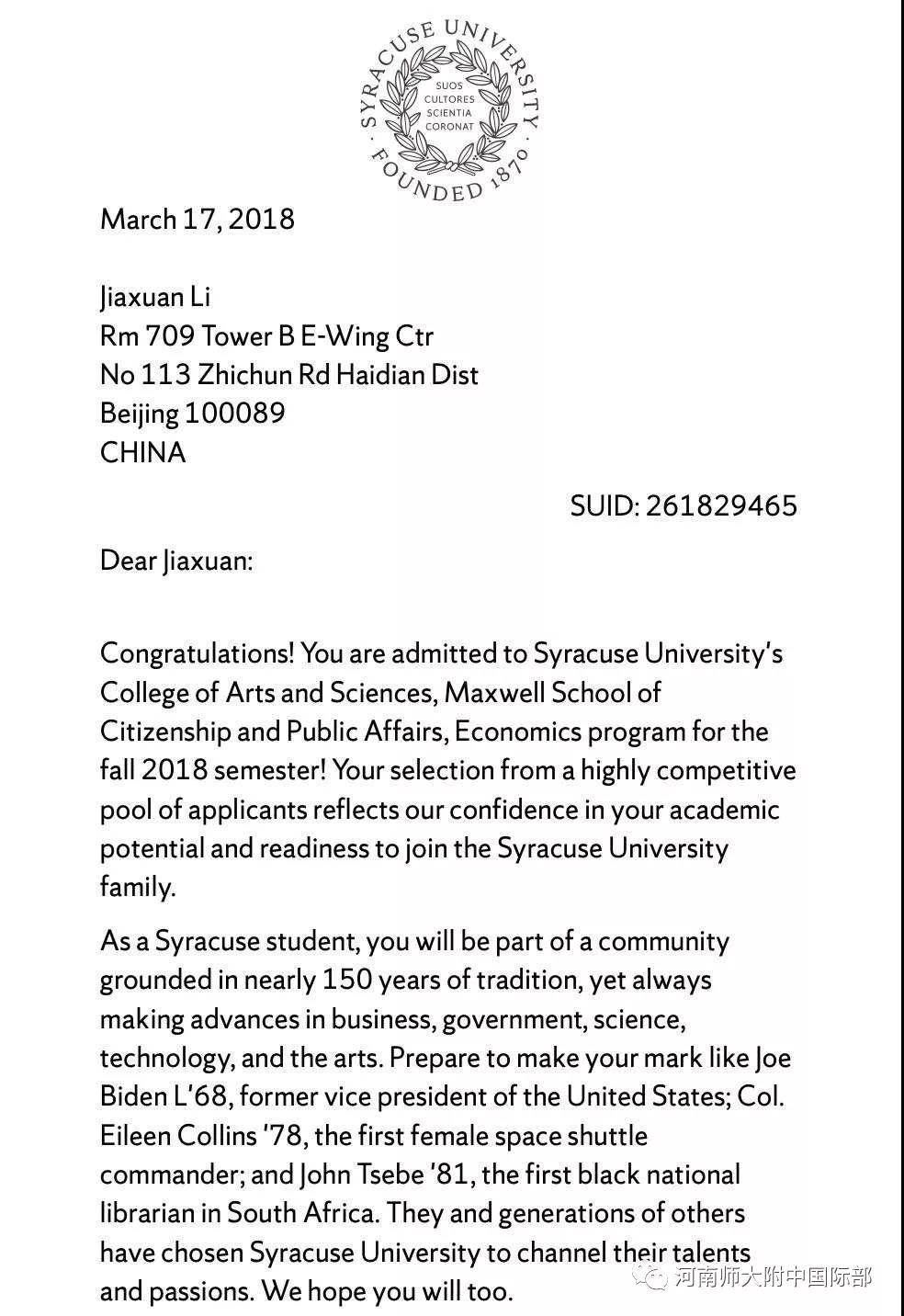 三年刻苦时光,五所海外名校!美国加州大学圣克鲁斯分校、加州大学戴维斯分校、密歇根州立大学、美国东北大学和雪城大学,是在美国和世界上有重要影响的高校,相信李佳轩同学等国际部学子凭借在附中国际部学到的知识和能力,一定会在心仪的高校继续努力,创造光辉灿烂的未来!