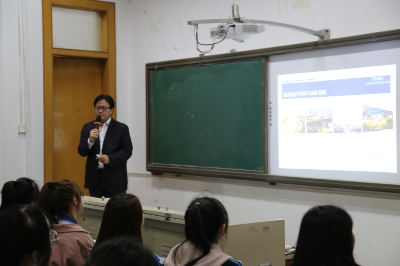 会谈结束后,延世大学代表团参观了我校国际部并在阶梯教室召开了专场报告会。