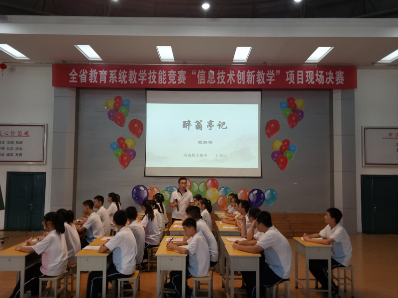 由河南省教育厅、河南省教育工会委员会、河南省电化教育馆联合组织的2018年全省教育系统教学技能竞赛“信息技术创新教学”项目语文学科现场的决赛,于8月8日在平顶山落下帷幕。日前,河南省电化教育馆公布了此次竞赛获奖名单。我校教师王青山荣获2018年全省教育系统教学技能竞赛特等奖。