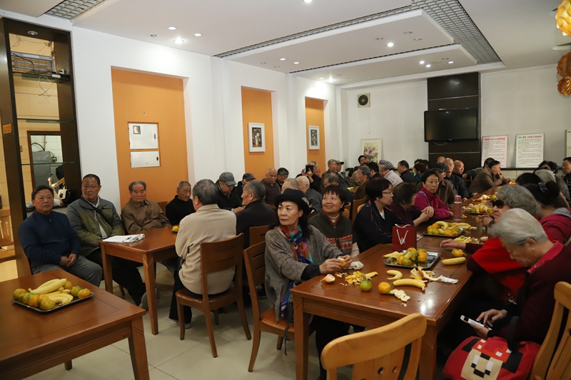 与会的老同志分享果品、畅所欲言,氛围轻松和谐,其乐融融。