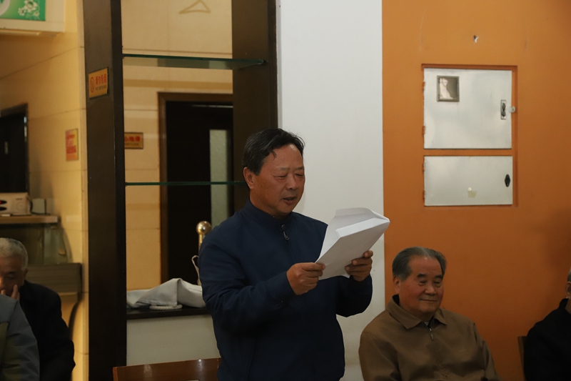 离退休党支部余保刚书记代表老同志进行发言。他对学校一直以来对老同志的关心关怀表示了感谢,号召离退休同志们继续关心、支持、参与学校的发展建设,为学校稳定发展发挥余力。