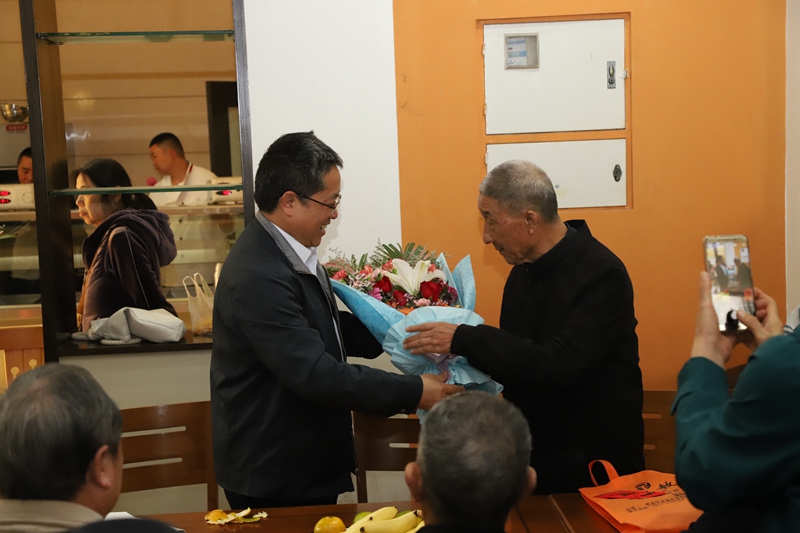 吃水不忘挖井人。重阳佳节来临之际,我校继续发扬敬老爱老的优良传统,在康园餐厅召开座谈会,为德高望重的离退休老领导、老前辈送去节日的祝福和慰问。刘黎校长、刘齐晋常务副校长、王继民副校长、赵振华副校长、杨相臣副校长出席座谈会,与各位老领导、老前辈亲切交谈,共庆佳节。座谈会由党办董良主任主持。——重阳节校领导亲切慰问离退休老同志