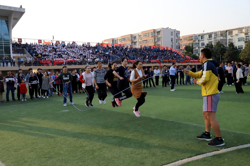 2018年秋季教职工运动会在主校区操场隆重举行。本着“友谊第一,比赛第二”的精神,本次运动会分两个时间段举行,10月12日下午是高中部与国际部教职工运动会,10月19日下午是初中部与行政教职工运动会,此次运动会有集体毽球、集体跳绳、背夹球接力、迎面接力四大类活动项目,老师们都以极大的热情参与其中。本次大赛以“积极运动强体质,团结奋进创佳绩”为主题,旨在鼓励教职工踊跃参与文娱活动,加强体育锻炼增强身体素质。