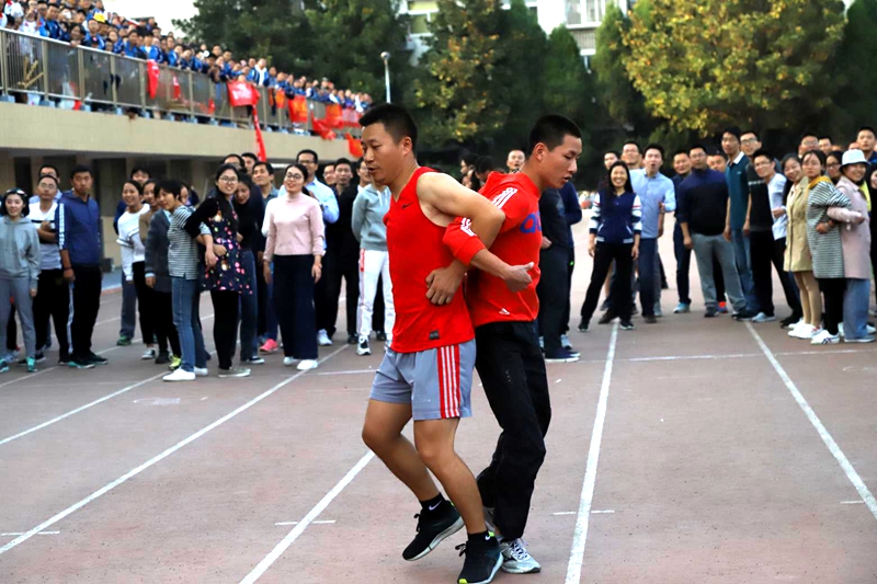 背夹球每年级选派教职工各8人,每两人1组,进行接力比赛,最终用时最短者胜出。背夹球比赛的进行让操场上充满了欢声笑语,为保证比赛顺利圆满完成,需要两个参赛选手之间密切的配合,各参赛选手花样百出,一组组选手背夹排球,呼喊着口号,步履矫健的向前移动。背夹球比赛让教职工项背相依,心心相印,瞬间拉近了两人之间的距离。