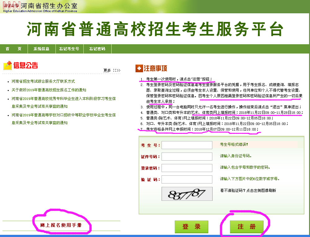 ★特别提示:网报注册时,以《河南省2019年普通高校招生网上报名使用手册》为准。(文末见附件)