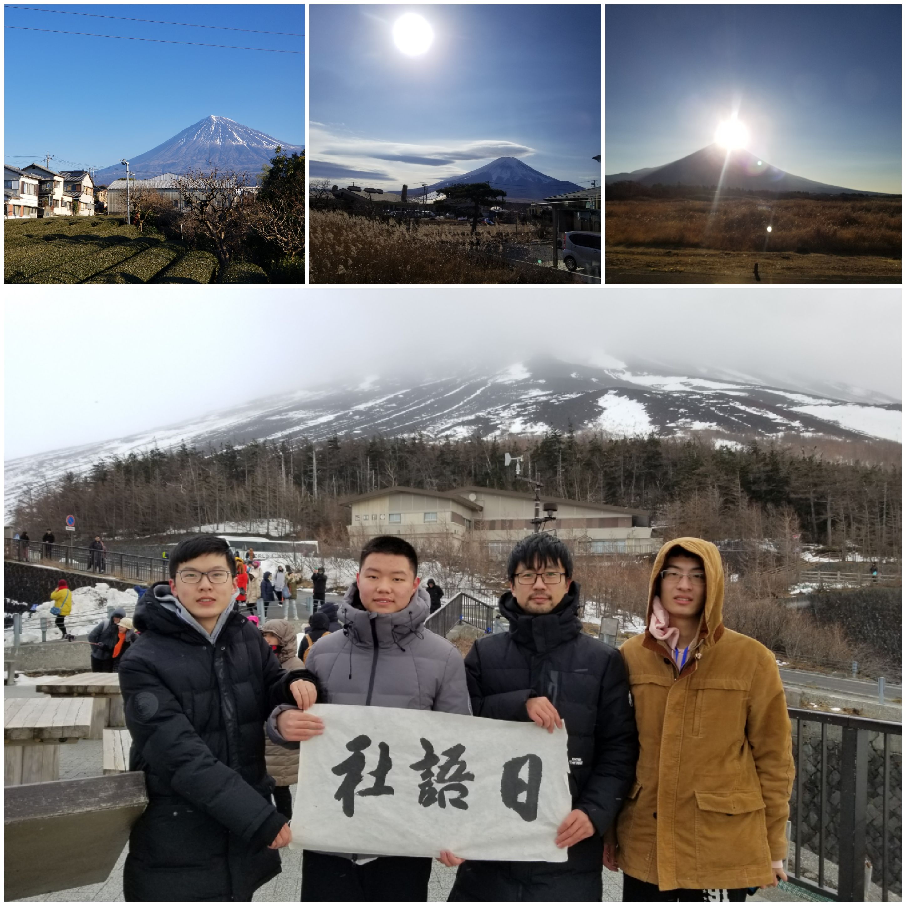 在富士山,遇见艳阳高照却突然变脸揽云落雪,遇见在狂风中顽强铺展的日语社社名条幅。
