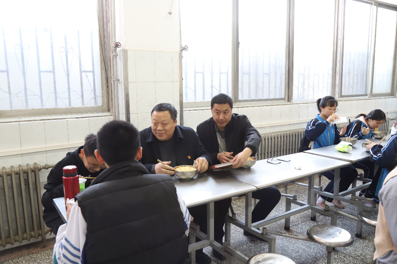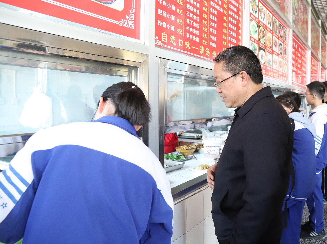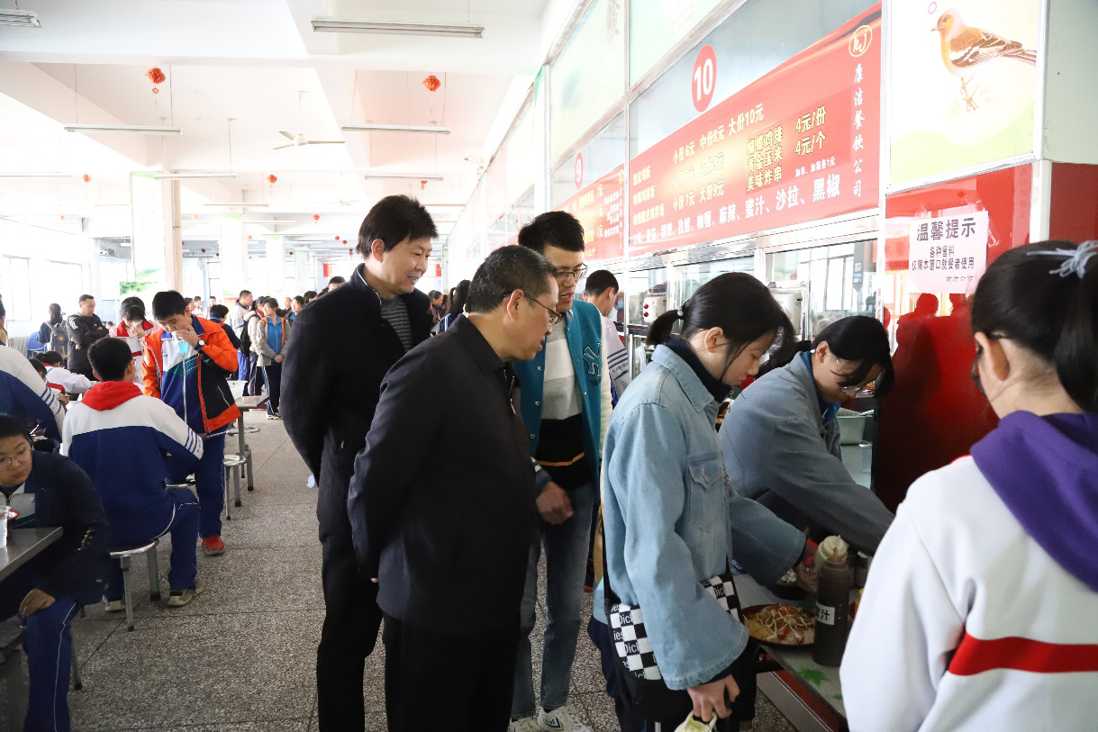 4月1日上午,由校长刘黎、校党委书记包卫忠、副校长杨相臣带领校办公室、宿膳服务中心、后勤处、各学部的领导同志,巡查学生超市的取缔情况,前往学生餐厅进行现场督导检查,认真查看餐厅食品安全卫生,亲切的与就餐师生进行交谈、沟通,详细了解餐厅食品的质量、价格、营养和花色品种,了解学生的需求,听取了学生的意见和建议。