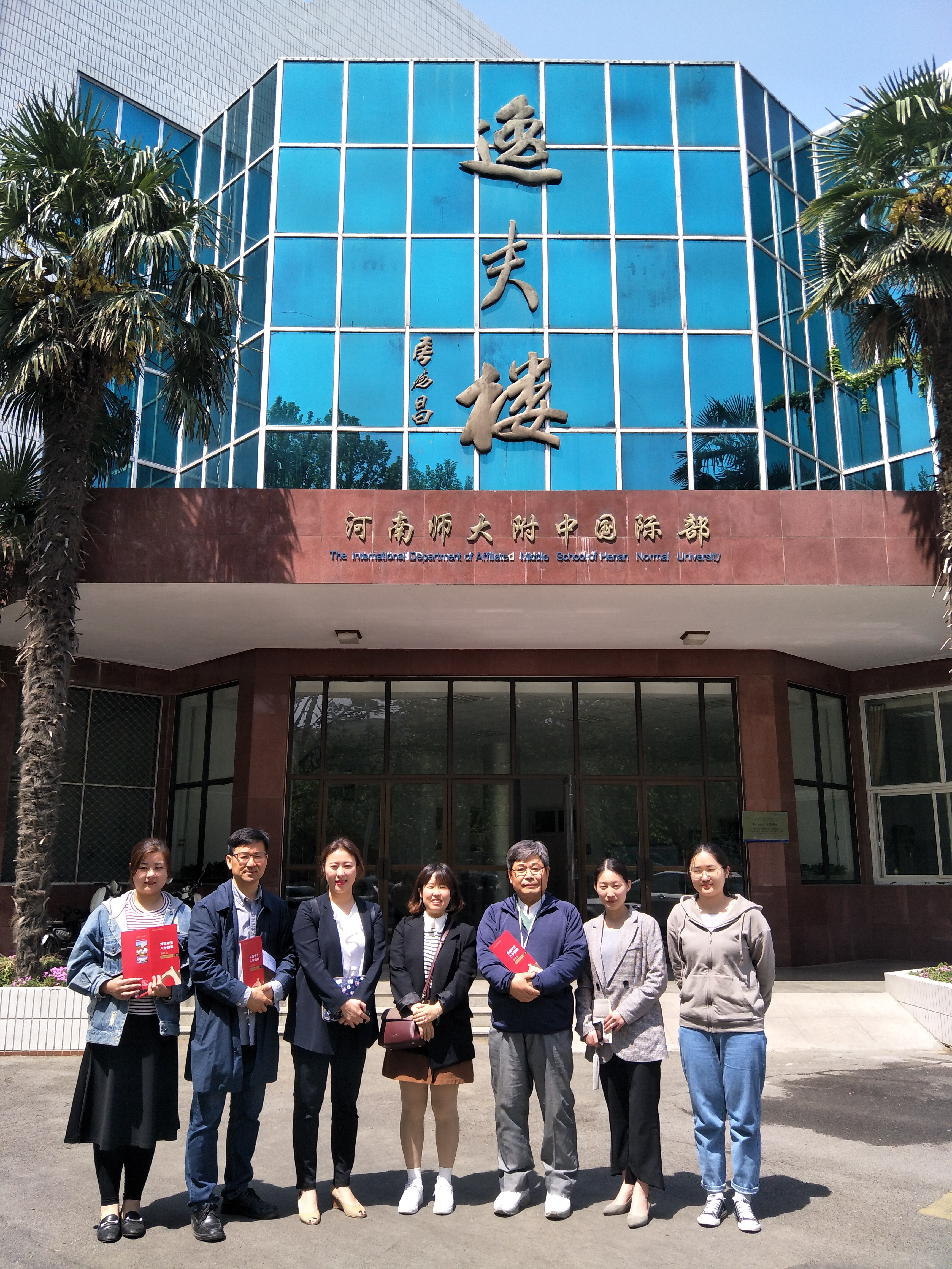2019年4月16日,韩国庆熙大学国际处代表团对我校进行友好访问,河南师大附中国际部主任王晓玲在国际部逸夫楼二楼会议室亲切会见了代表团一行并进行亲切友好的会谈。会谈中,王晓玲主任介绍了国际部十年来的办学业绩、学生情况以及国际部发展前景。韩国庆熙大学代表团高度赞赏了我校国际部严格办学的态度以及开阔的世界眼光,并表明了愿意与我校国际部加强合作关系的积极态度。