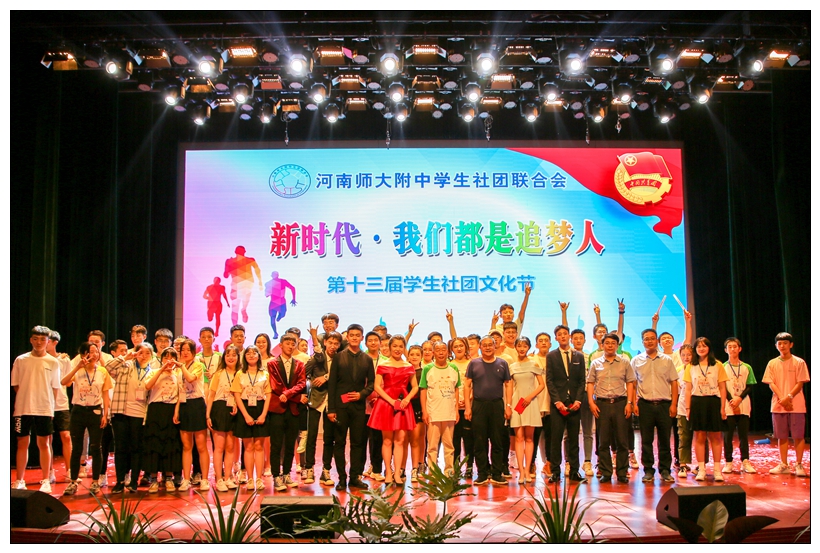 五月榴花照眼明,缤纷社团展风采。5月25日晚,我校第十三届“新时代·我们都是追梦人”学生社团文化节暨特色活动成果展演在西校区教工礼堂隆重举行。我校党政领导、相关部门中层干部、学生社团指导教师、家长代表与六百余名学生齐聚一堂,共同参与了此次文化节活动。本届社团文化节活动的成功举办,集中展现了附中学子积极向上的精神风貌,充分反映了我校社联和各社团锐意进取、百花齐放的蓬勃态势,很好的营造了健康向上,丰富多彩的校园文化氛围,彰显了中学共青团的文化育人、活动育人功能,积极践行我校一主两翼、特色育人的办学理念。
