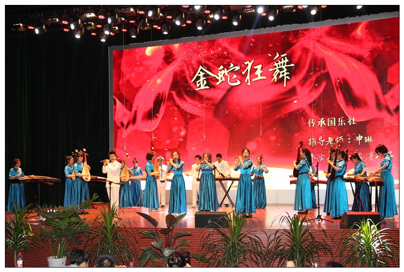 传承国乐社的民乐合奏《金蛇狂舞》,将唢呐、琵琶、二胡、古筝等中国传统民族乐器与现代流行元素相融合,使传统民乐焕发出新的活力和生机。
