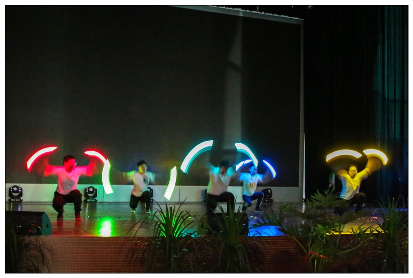 日语社带来的荧光舞《浮光·影》,舞者时而是翩翩起舞的蝴蝶,时而是绚烂夺目的萤火,他们用舞姿谱曲填词,用灿烂打动人心。