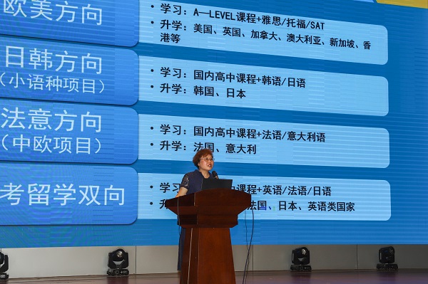 附中国际部主任王晓玲、副主任吴向辉、年级主任周睿做留学趋势及人生规划报告