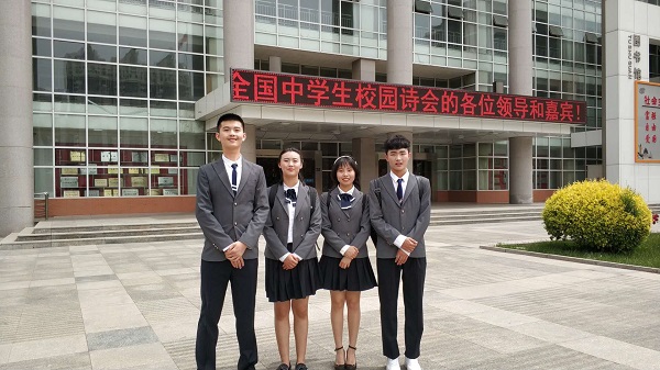 我校选派高二年级董争妍、刘笑羽、吕子扬和苏楚然四位同学,甴任云峰和刘诗帅老师带队,参加了此次诗会活动。