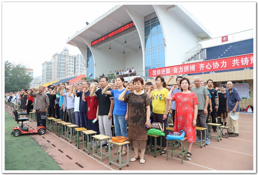 大会伊始,王继民副校长带领全体教职工面向国旗、面向全体学生,重温《河南教师誓词》,铮铮誓言,响彻全场,这是每一位老师的自我期许,更是对教育事业的庄严承诺。台下学生掌声雷动,表达着对老师们的肯定和信任。