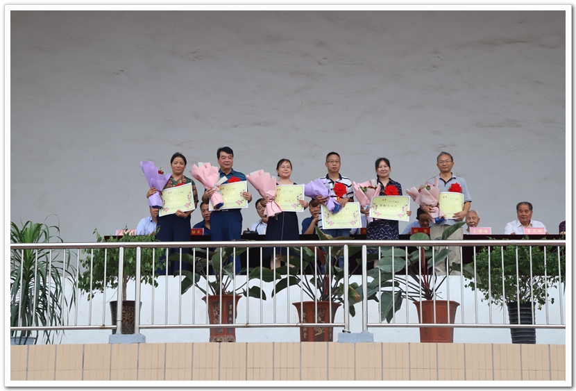 伴随着喜悦的音乐,受表彰的先进集体代表和先进个人身带红花走上主席台,微笑着从领导手中接过荣誉证书。台下师生方阵中传出的阵阵喝彩和掌声,是对老师们的祝贺,更是对老师们的肯定与褒奖。