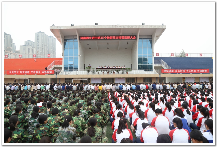 在第35个教师节来临之际,9月10日下午,我校2019年教师节庆祝暨表彰大会在东校区大操场隆重举行。我校刘黎校长、包卫忠书记、师大派驻我校正处级纪检员石磊书记,我校刘齐晋常务副校长、王继民副校长、赵振华副校长,王璧峰、李天刚、侯福祥、宋世礼等老领导以及今年满三十年教龄的老师在主席台上就座,与全校师生欢聚一堂共庆节日的到来。大会由常务副校长刘齐晋主持。