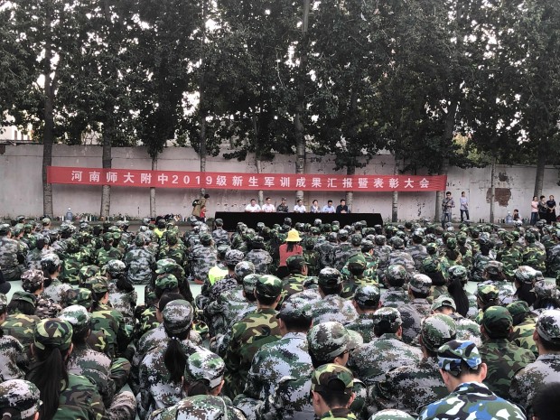 9月17日下午3:30,附中2019级新生军训成果汇报暨表彰大会胜利举行,国际部2019级新生经历了为期8天的军训后,在西校区运动场集结,挺拔肃立,等待检阅。