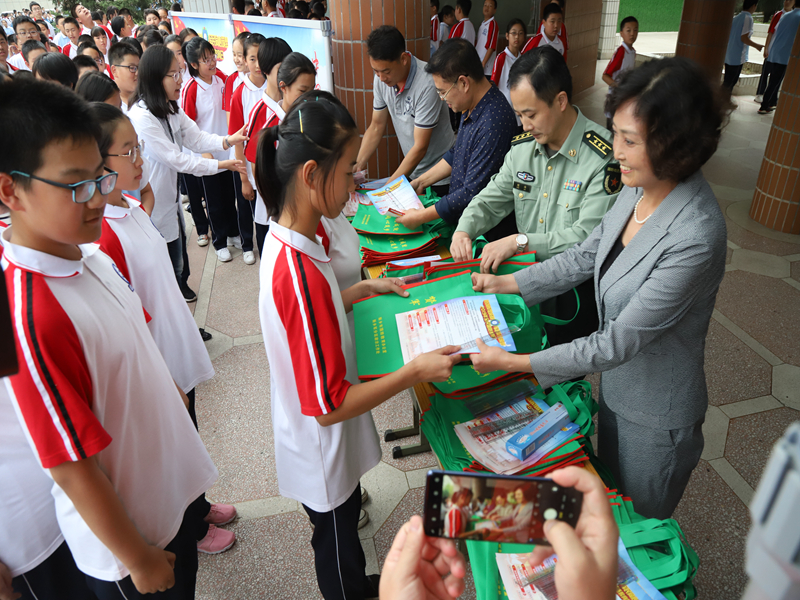 9月21日是我国第19个全民国防教育日。20日,新乡军分区和市国教办带领各县(市、区)人武部、国教办积极走进我校开展新乡市第十九个国防教育日主题宣传活动。新乡军分区政治工作处主任、新乡市国防教育办公室主任陈伟、新乡市教育局副局长宋卫红、河南师大附中常务副校长刘齐晋、综治办主任刘峰、以及初中部初一年级师生代表共同参与了本次活动。