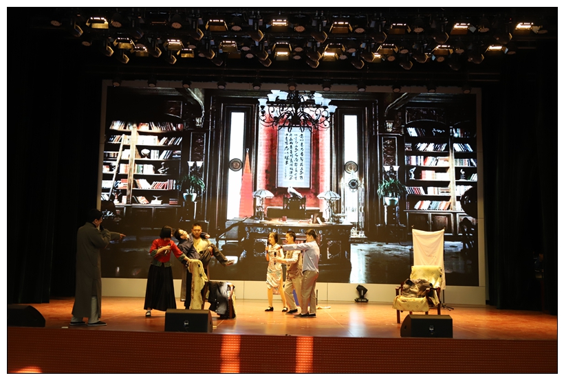 开场歌舞《琵琶行》将现代与传统因素进行完美融合,令观众耳目一新。在这个热闹的时代,重读《屈原》《林教头风雪山神庙》,回望主人公的命运,阴谋之黑暗,主人公之磊落耿介,不能不使我们反思过去,审视当下。而荆轲之慷慨侠义,孔乙己之迂腐麻木,更是令观众嬉笑怒骂、扼腕太息。《茶馆》,人物众多,角色复杂,时间跨度大,然而学生们驾驭角色的能力远超我们的想象,完美的呈现了一场时代大剧。兰芝、仲卿夫妇之爱情悲剧、孔乙己穷困潦倒,范进中举、喜极而疯之人生悲剧,让观众深刻领略了封建礼教吃人之悲剧。《北京人》《林黛玉进贾府》则都以大家族为背景,展示出新生与腐朽,光明与黑暗的冲突。通过这些冲突,深入封建家庭这一躯体深处,着力反映出封建主义精神统治对人的吞噬,人们在这种精神统治下对人生的追求,以及这种精神统治必然破产的结果。《红岩》则描写了在国民党当局疯狂镇压共产党领导的地下革命斗争的形势下,共产党人在狱中所进行的英勇战斗,虽然最后惨遭屠杀,但却充分显示了共产党人视死如归的大无畏英雄气概。同学们将剧中人物的性格特点刻画得栩栩如生,他们感情饱满的台词、丰富的肢体语言、精美的服装道具,完全将自己融入到剧本的角色之中,将剧本中的形象、情节演绎得淋漓尽致,深深地感染了在场的每一位观众,博得全场雷鸣般的掌声。