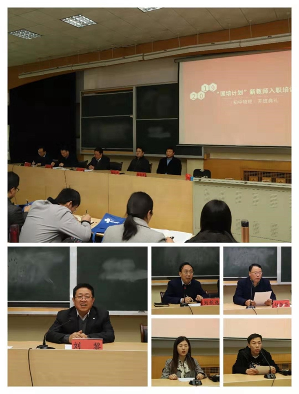 2019年11月25日上午八点三十分,初中物理新教师入职培训班开班典礼在办公楼四楼会议室举行。典礼由刘新选主任主持,参加典礼的领导有师大附中校长刘黎,师大附中党委书记包卫忠,师大附中副校长刘齐晋,师大附中副校长王继民,师大附中副校长赵振华,师大附中副校长杨相臣,以及附中教师代表和学员代表发言。