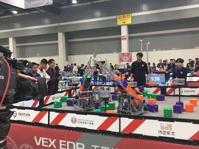此次比赛,是VEX机器人玩家的一场盛会,跨文化交流也是赛事的一大亮点。赛场上英语、汉语、韩语无缝切换,赛场下VEX机器人是最畅通的语言。各赛队赛场上切磋、赛场下交流学习和使用VEX的经验。