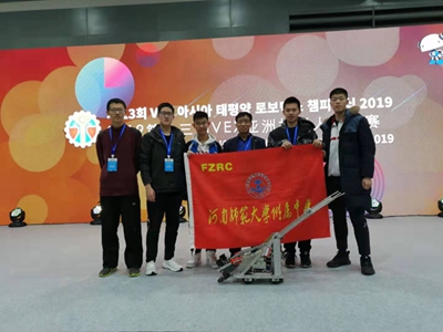 2019第十三届VEX亚洲机器人锦标赛在韩国首尔举行,来自中国、哈萨克斯坦、美国、韩国等七个国家和地区的360支赛队参赛,将近2000人次参加。河南师大附中FZRC机器人竞赛团队应邀参加本次比赛,经过历时四天激烈角逐,我校曹宇、吴赞宇、姚缪仲彦、刘熠凡、马丁等五位学生夺取VEX EDR项目高中组铜奖。