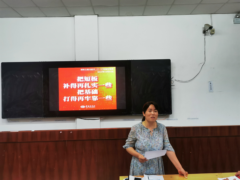接着,娄主任就初一下学期以来初一年级的教育教学工作进行总结,尤其是对疫情期间初一年级老师自发录课以及年级宣传团队的努力进行了肯定,在期中考试分析环节,他分别从两校对比、各科及总分上线情况、主副科上线情况、各科以及总分平均分情况等用ppt的形式,用折线图、量化表、色块图等多个维度对期中考试进行了详尽的分析,指出了目前存在的两极分化凸显、学生心理问题增多等现实问题,结合当前疫情防控的特殊时期给出了解决策略。