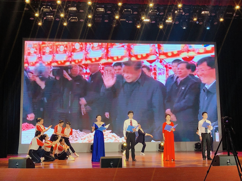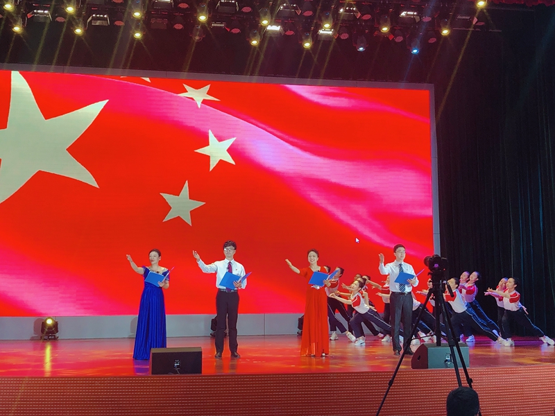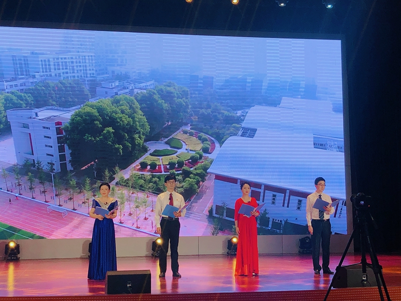 在长视频录制之初,刘齐晋副校长亲自参与撰写、修改朗诵诗稿,以突出教师队伍学习实践习近平新时代中国特色社会主义思想行动为主线,充分体现广大教工不忘初心、牢记使命的形象及努力实现中国梦的精神,把习近平总书记关于教育、青年、党建、家风等的重要讲话镶嵌在诗句中,从人民教师、中国青年、共产党员、中国母亲等不同角度回答“我是谁”“为了谁”的历史课题;校教师发展中心副主任崔彦芳老师与多次代表我校参加各级各类演讲、朗诵、主持活动并屡获奖项的李雷、史亚楠、范楷老师组成朗诵团队,认真演练;艺术体育教育中心主任杨芳蕾、舞蹈教师杨金金老师精心选择配乐,编排伴舞;后勤部门对教工礼堂进行了反复消菌灭毒和通风换气;现代技术中心与视频录制团队一道,为朗诵进行了舞台合拍及校内外景拍摄……多个部门心齐力协,清晰展现了附中人的精神风貌。