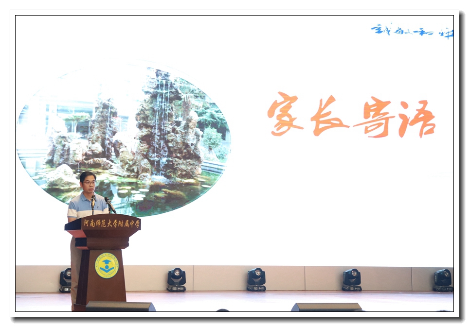 家长代表高1801班张天祺父亲代表全体家长表态,将全力以赴配合学校做好学生的后勤保障工作,为同学们营造良好的学习氛围,让同学们能以更健康的体魄,更从容的心态,扬鞭策马、笑迎挑战!