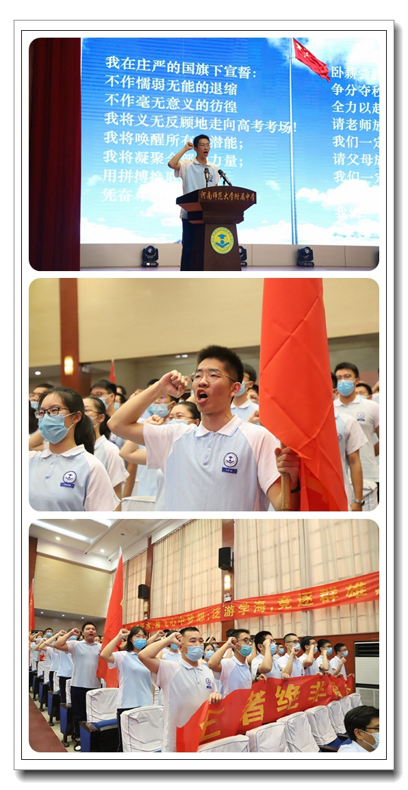 战旗招展,战鼓雷鸣,同学们神情肃穆,庄严宣誓。同学们的铮铮誓言,呐喊出了昂扬的斗志、必胜的决心。