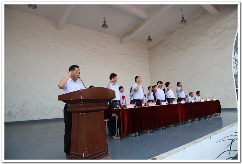 在王继民副校长的带领下,全体教职工面向国旗、面对全体学生,重温教师誓词。铮铮誓言,是每一位老师的教育初心,也是每一位老师一直以来对教育事业不变的坚守。