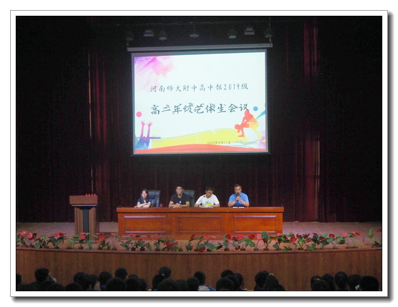为发挥优秀学生榜样引领作用,进一步浓厚艺体生学习氛围,做到比有参照、学有标杆、干有方向,根据高中教育教学部的工作部署,高二年级部精心策划、周密安排,于2020年9月11日晚,在东校区道德大讲堂召开以“艺体薪火传,砥砺同求知”为主题的艺体生经验分享会。本次会议由年级副主任王长伟老师主持,年级主任白运亮老师、优秀艺体毕业生代表刘钰霖、黄嘉宁及全体高二年级艺体生参会。