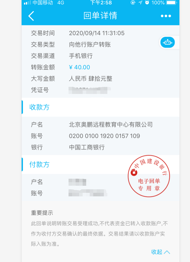 转款凭证:可以是所有银行(此处以建行和工商银行为例)须有付款方和收款方