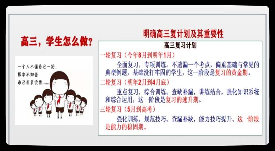 高三正式开学已近一个月,近一段时间来,学校的严格管理得益于家长的全力支持与配合,学生才能顺利、有效地进行复习备考。在经历了前一段时间的课堂学习与考试检测之后,学生在学校的学习和生活状态也是广大高三学生家长最关心的。各班班主任依据年级提供的各班数据,结合本班的实际班情举行家长会,重点讲述了学生生活和学习,一轮复习备考,家校合作等几个方面内容。