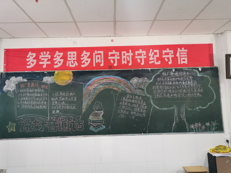 9月14日下午,初中部初二年级开展了相关的主题班会活动,让同学们了解了推广普通话和使用规范字的意义,明确本届推普周的主题,布置落实推普周活动安排。各班还积极创办主题相关的黑板报、手抄报,不断提高普通话推广宣传周的知晓度和影响力。此外,初中初二年级还通过诵读、书写、演讲、写作等多种形式,弘扬中华优秀文化,进行推普活动,在活动中为了营造浓厚的校园文化氛围,进一步渲染推普气氛,扩大推普宣传的影响。