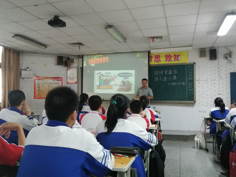 为了全面落实国家语言文字法律法规和方针政策,大力推广和规范使用国家通用语言文字,传承弘扬中国传统文化、提高师生语言能力,切实做好全面开展第23届全国推广普通话宣传周活动,根据学校相关工作要求,初中部初二年级开展了一系列以“同讲普通话,携手进小康”为主题的宣传活动。