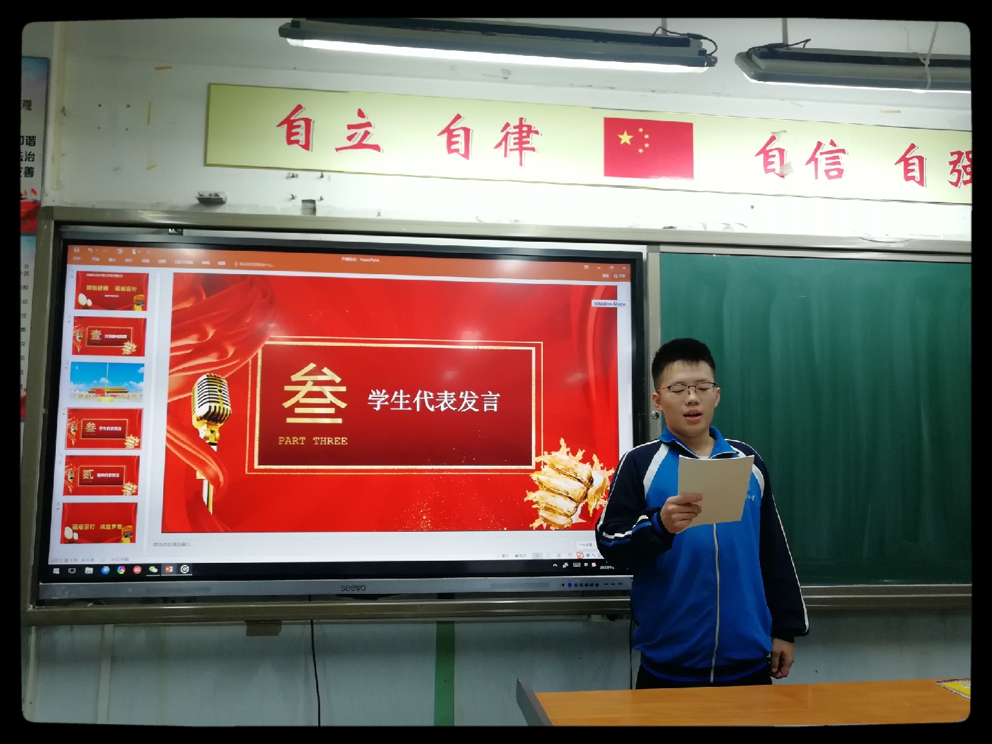 少年智则国智,少年强则国强,少年进步则国进步,少年雄于地球则国雄于地球!班主任老师也希望同学们在这少年时光中能将“为中华之崛起而读书”铭记于心,将满腔爱国情怀化为学习的动力,让最崇高的理想化为现实,让中华民族伟大复兴不再是一场空谈。