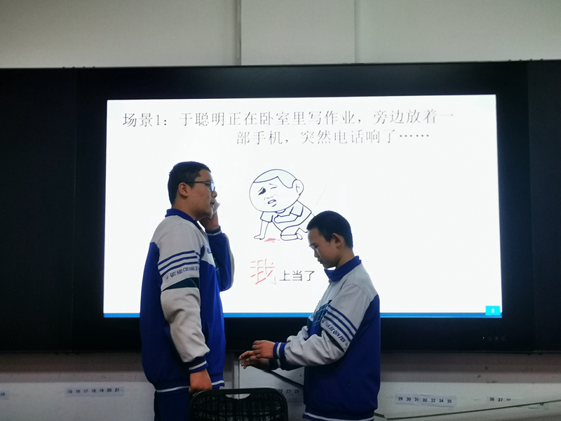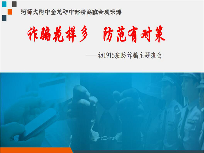 首先郭晨光老师进行班会课的展示。他的班会课主题是“骗花样多,防范有对策---防诈骗主题班会 ”由两个学生主持,共分为五个环节——“什么是诈骗?常见的诈骗花样有哪些?如何识别防范诈骗?上当后如何补救?如何分享防诈骗知识,让更多的人避免上当受骗”。