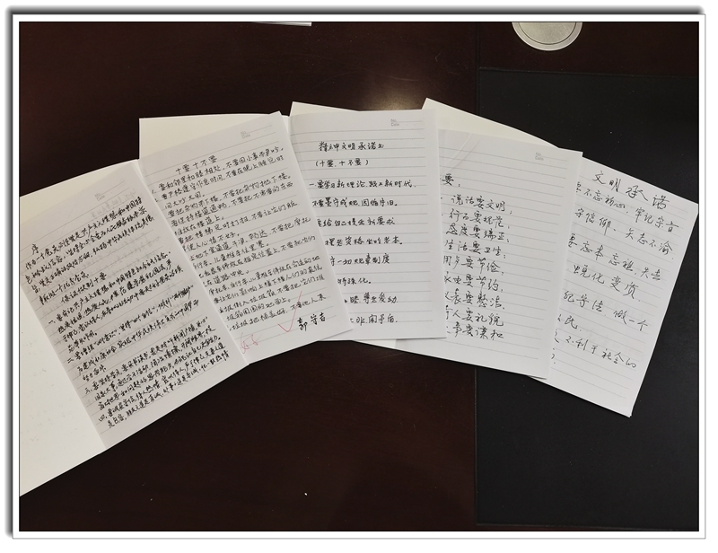 最后,退休党支部余保刚书记向大家总结汇报了十月份党支部开展的学习文明手册,自我文明承诺,自编自写“十要十不要”活动情况,挑选优秀作品进行了集中展示。广大退休党员和退休教职工结合自身实际,认真编写文明承诺“十要十不要”,大家纷纷表示,要以承诺为镜,积极践行,为全面提升文明校园创建水平再立新功。