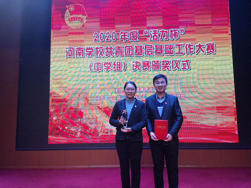 12月22日至23日,由共青团河南省委主办,共青团开封市委承办的2020年度“活力杯”河南省学校共青团基层基础工作大赛(中学组)决赛在河南化工技师学院举行。共青团河南省委副书记王笃波莅临决赛现场,共青团新乡市委副书记吴燕、学校部部长孟伟亲临比赛现场观摩指导。校团委委员范楷老师代表学校团委参加河南省学校共青团工作项目大赛并荣获一等奖。