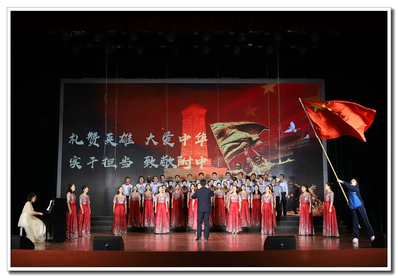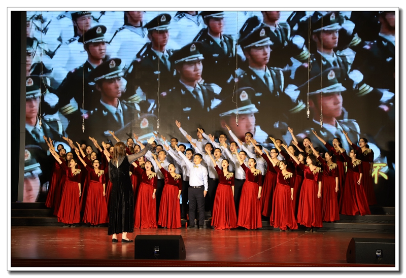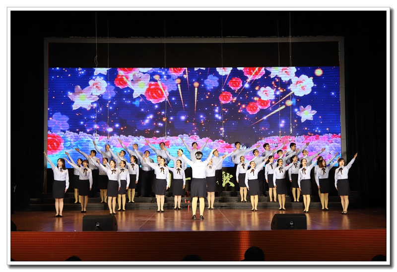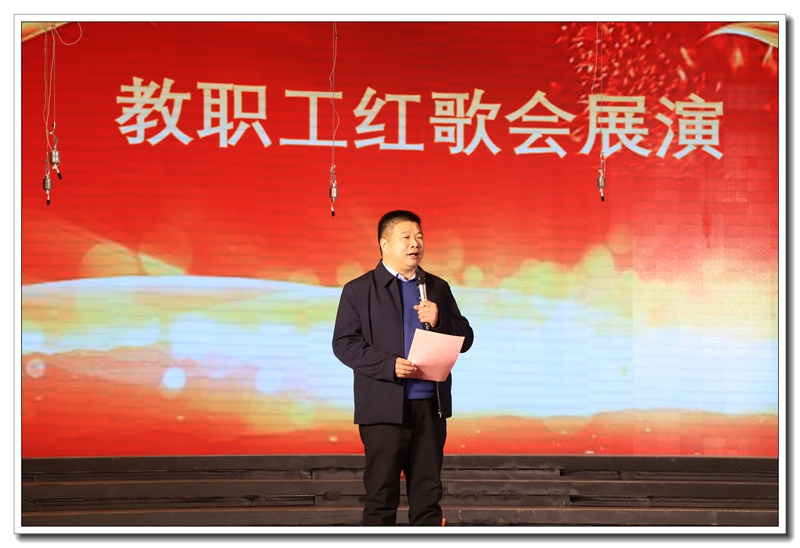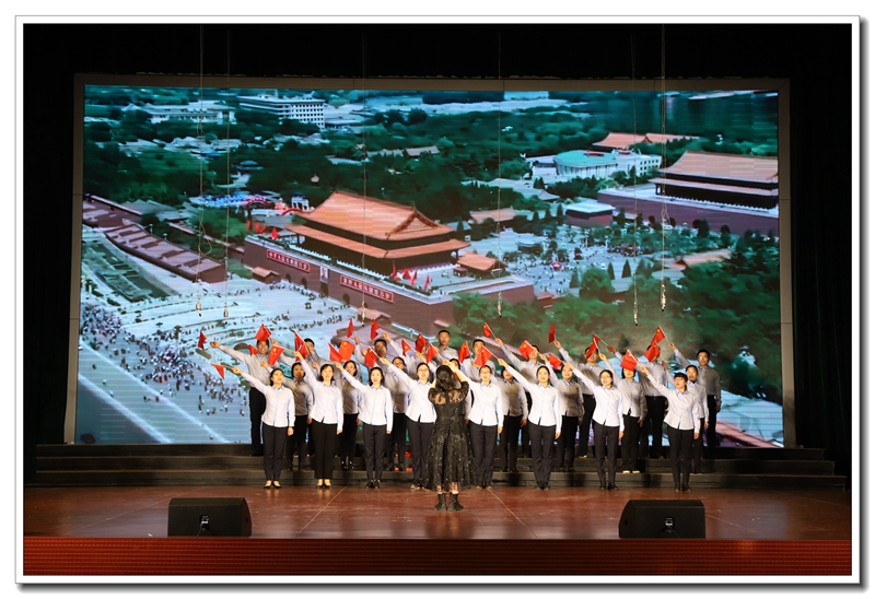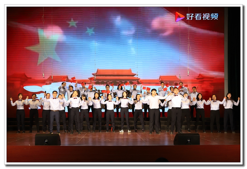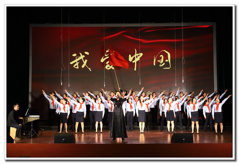 在各教师分工会先后高唱经典红歌后,一首河南师大自谱新曲将活动气氛推向高潮。一首散发着中华国乐幽香又吐露着时代新声芬芳的《我爱中国》,在附中行政教辅分工会领导和老师的精心编排和精妙演绎下,彰显了附中人对工作的热爱、对祖国的敬意,附中人的爱国心声在教工礼堂久久回荡……