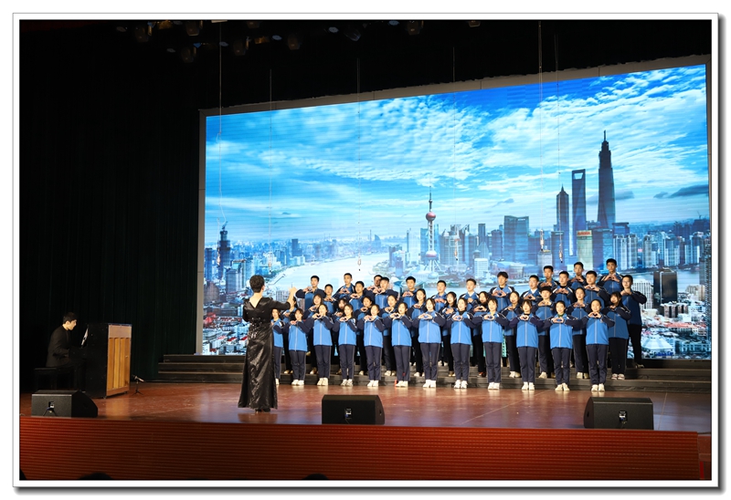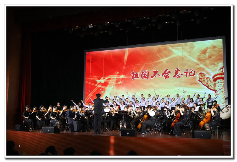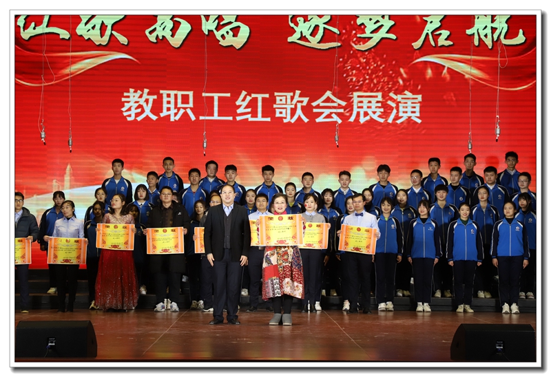 劳累了一个春秋的老师们以歌声振奋精神,努力了一个冬夏的学生也在辞旧迎新之际,向祖国母亲献礼,与恩师同台献艺。在各级比赛中屡获殊荣的附中学生合唱团,接过老师手中的爱国主义火炬,以一首助演曲目《让世界赞美你》讴歌新中国,一表爱国心,博得热烈掌声!