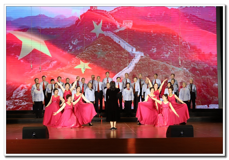 之后,老一辈附中人健步登台,走过流金岁月的他们身退心不休,以矍铄的精神、经典的旋律,燃起红歌会的火炬,一曲《我和我的祖国》高亢嘹亮,振奋人心,高标开场。
