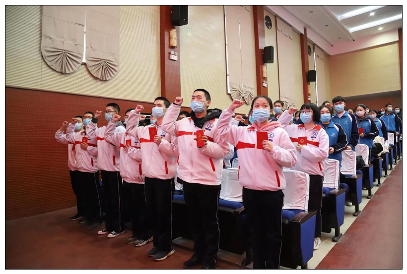 在主持人的领誓下,同学们左手手持《宪法》放于胸前,举起右拳,面向一起庄严宣誓。铿锵有力的誓言表达了学生爱国、励志、求真、力行的信心与决心。